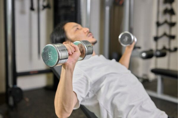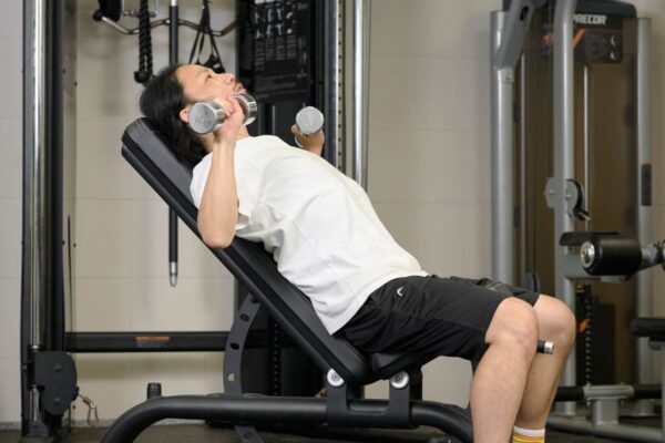 ジムでは、ダンベルやトレーニングベンチなどの器具を用いたトレーニングをおこなうことで、より集中的に大胸筋上部を鍛えることができる。