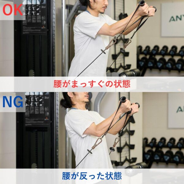 正しいフォームで動作できていないと、狙った部位に刺激が入らない。