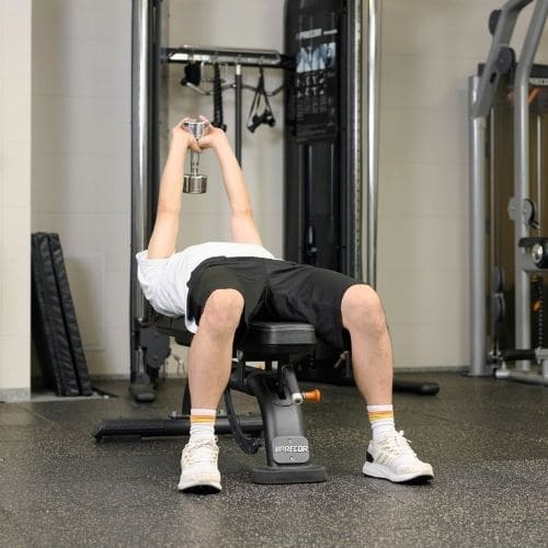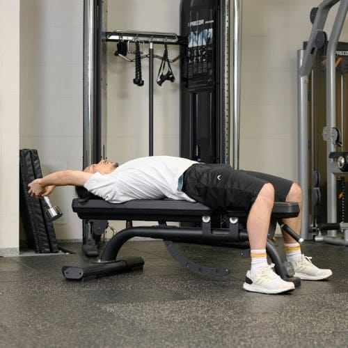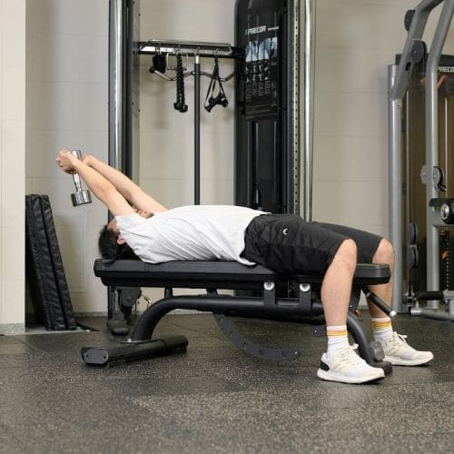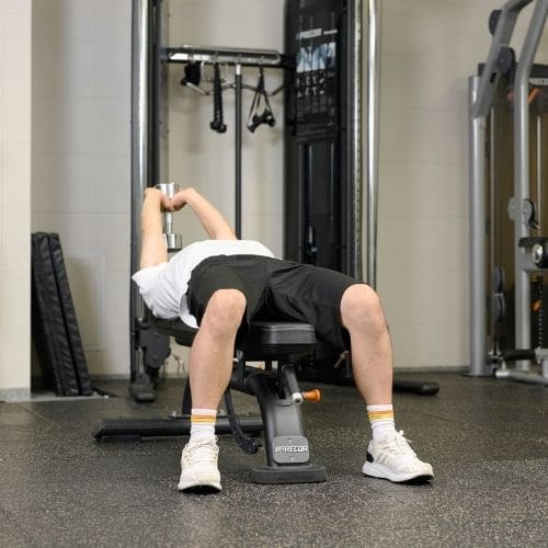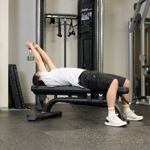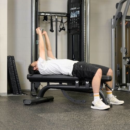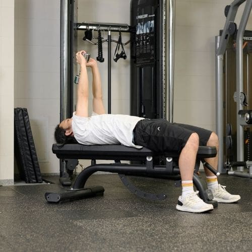 フラットベンチでおこなうより、前腕の位置が乱れやすかったです(左ひじが内側に入ってしまう)。そのため、両腕を意識しながら取り組んだほうがよさそうです。
