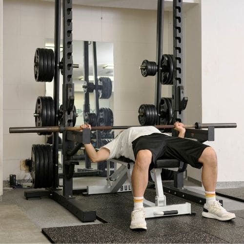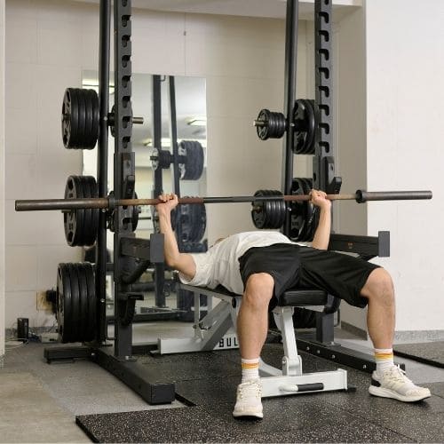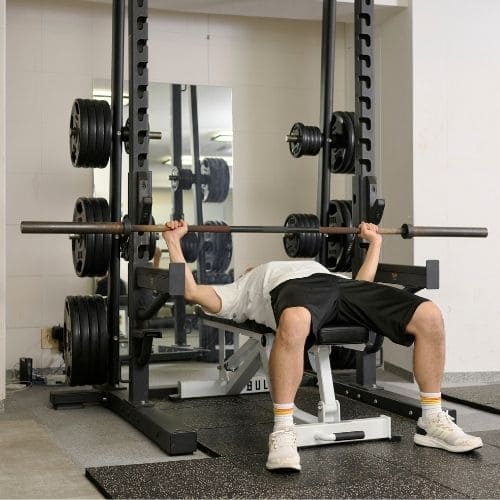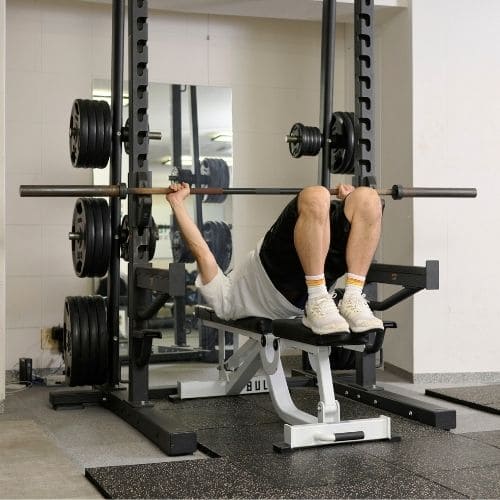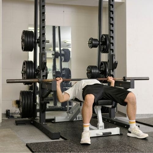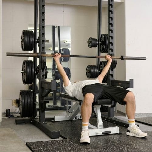 ラックの高さや足の踏ん張りを整えるだけで安定感が大きく変わりました。バーを胸骨下部に向けて下ろす意識を持つことで、より大胸筋に効いている感覚がありました。