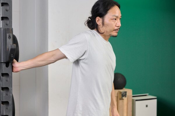 トレーニング後はストレッチや軽いケアを行うことで回復を早められます。具体的には、胸を大きく開く、フォームローラーを胸や肩前部に当ててほぐす方法があります。