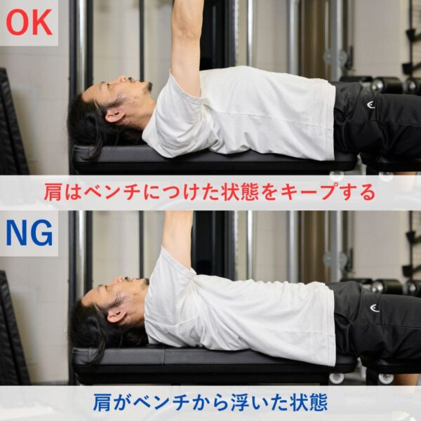 ・胸上部の厚みが出て、立体感が増す ・肩とのつながりが強化され、プレス系の動作が安定する |