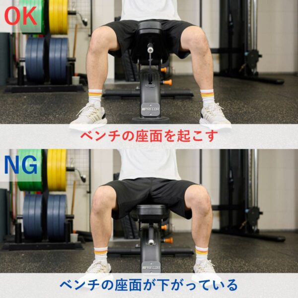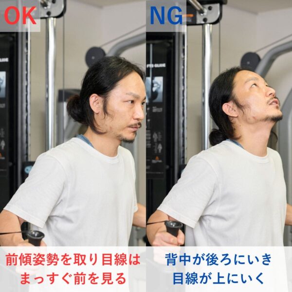 フォームを崩したまま高重量を扱うのは効率も悪く、ケガのリスクが高まります。特に初心者は「ていねいな動作で筋肉に効かせる」ことを優先しましょう。正しいフォームが身についてから重量を増やすことで、長期的に安定した成長につながります。