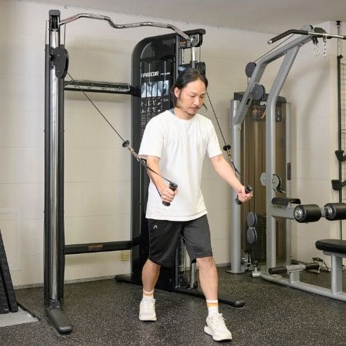 普段から姿勢の意識が弱いせいか、トレーニングを始めたばかりの頃は、胸を張る感覚をつかめませんでした。アップとして軽い重量でしっかり胸筋を伸ばす感覚をつかめるようになったことで、トレーニング効率も変わった気がします。