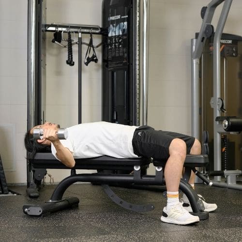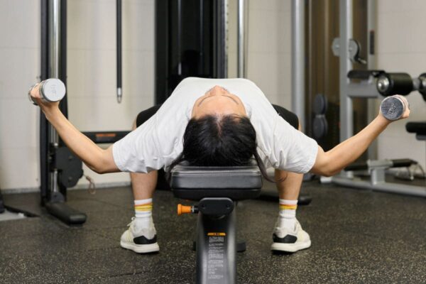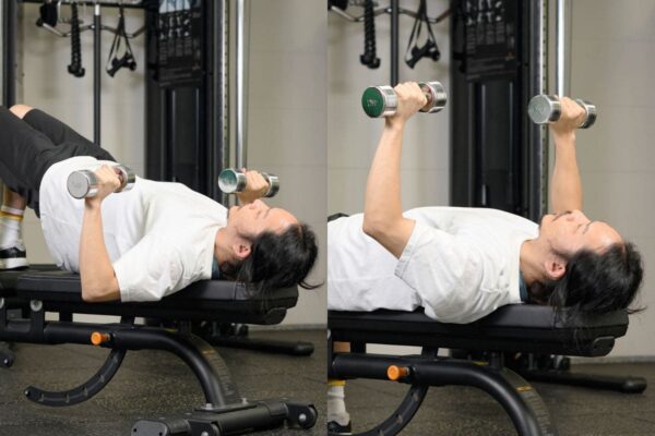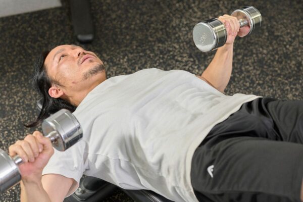 可動域が狭い、フォームが崩れていると下部に十分な刺激が入らない。ダンベルやバーを胸の下部までしっかり下ろさないまま押し上げると、中部や肩前部に負荷が逃げてしまう。