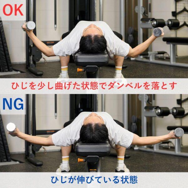 大胸筋下部は角度をつけた種目が多いため、フォームを誤ると肩や肘を痛めやすい。安全に鍛えるためには、次のポイントを意識することが大切だ。