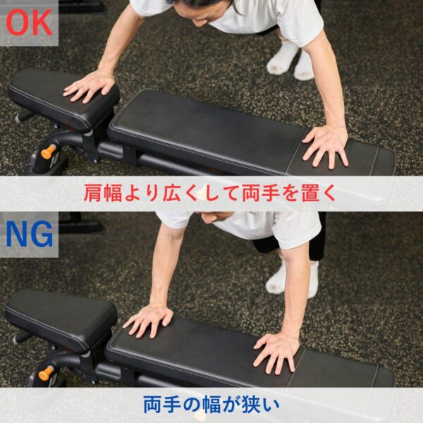部位ごとの刺激をしっかり分けるには「角度」と「姿勢」の安定が大切です。インクラインでは下向きの押し出しを意識し、胸下部を収縮させる感覚を掴みましょう。ノーマルでは可動域をしっかり確保し、胸の中央にストレッチと収縮を感じることが重要です。デクラインは腰の反りが出やすいため、背中から腰を一直線に保つ意識を持つと安定します。
