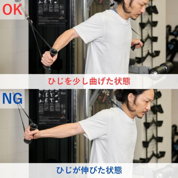 肩甲骨を下げ続ける意識が難しく、気付くと肩がすくんで三角筋に力が入っていました。正しい姿勢を保つのに慣れるまでかなり意識が必要でした。