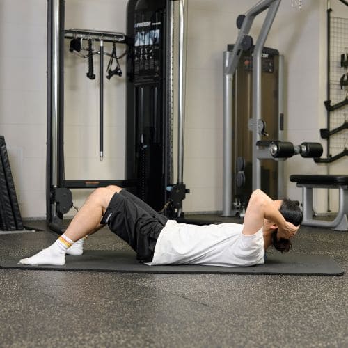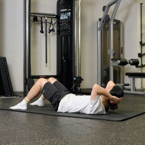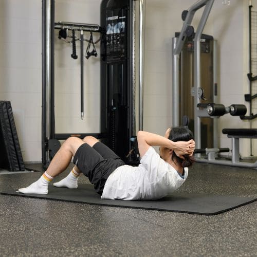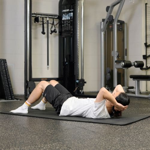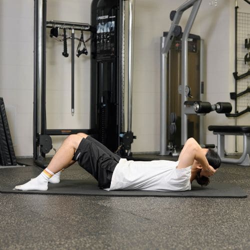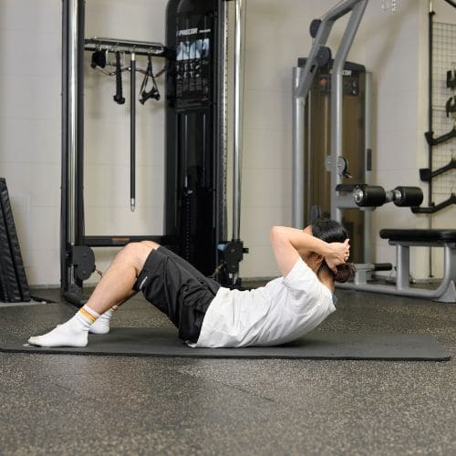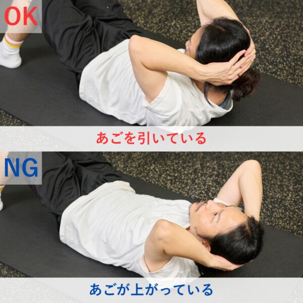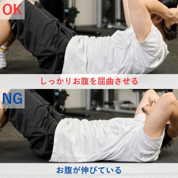 上体おこしのように大きく起き上がると、太もも(腸腰筋)に力が逃げやすくなります。みぞおちを中心に腹部を丸める意識で、息を吐きながらゆっくり収縮→吸いながらゆっくり戻す流れを徹底すると、腹直筋上部に集中的に入ります。