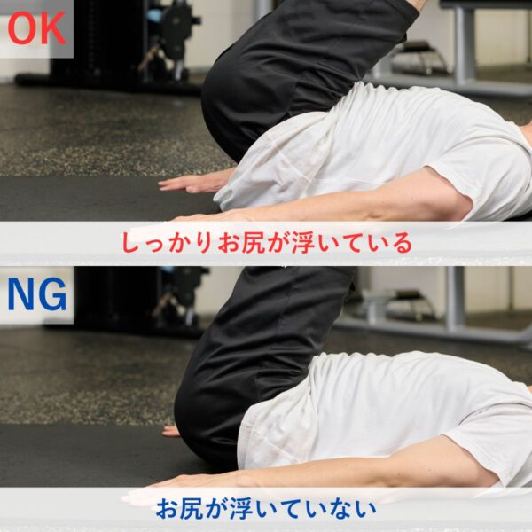 - 骨盤を寄せるイメージでお尻をしっかり上げる