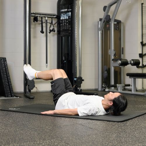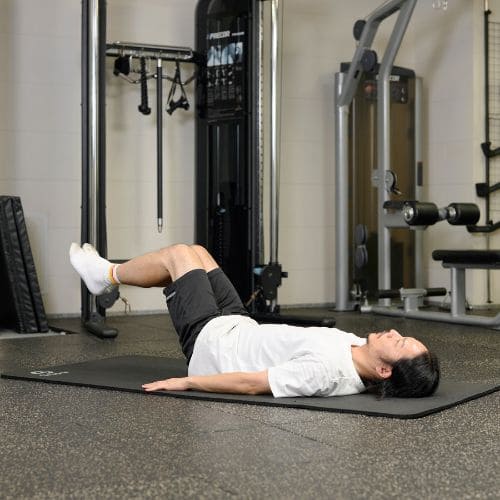 - 腹筋の下部を意識しながら、お尻を持ち上げる