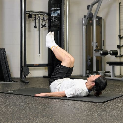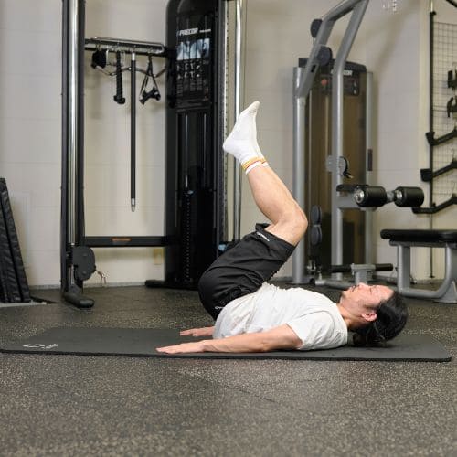 見た目は小さな動きですが、骨盤を丸めてお尻を軽く持ち上げることに集中すると20回前後でもかなりきつく感じます。脚を振ると腰にきやすいので、反動を使わず小さく正確に動くほうが下腹にしっかり効きます。