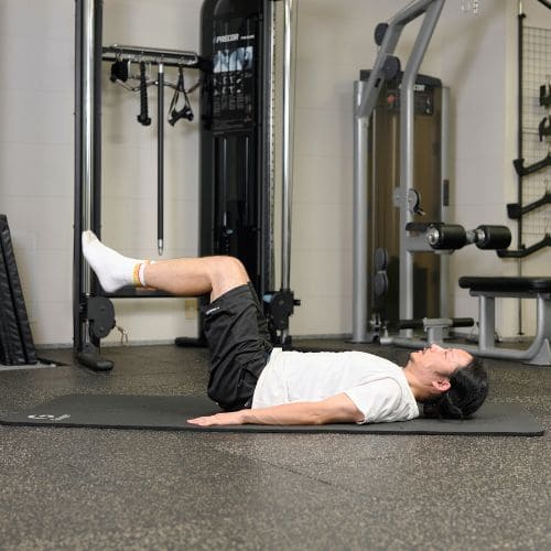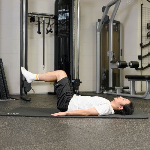 腹筋下部を狙うには、脚を大きく振り上げるより骨盤を持ち上げるイメージが大切です。頂点で1秒静止し、戻すときはかかとが床につく直前で止めると反動が消えて刺激が抜けません。