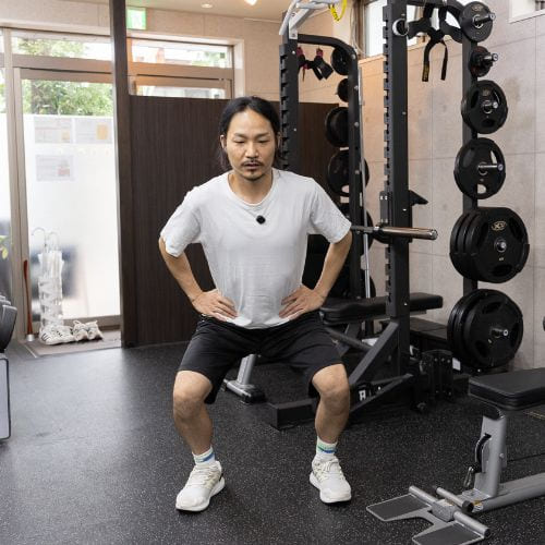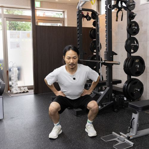 8〜10回 | 3セット | 90秒 | 深くしゃがみ、お尻を引く |