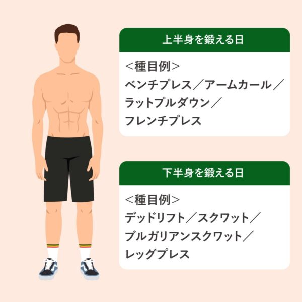 | 休養 | 週4〜5日 | 週1〜2日 | 休養日は筋肉の成長に欠かせない。 |