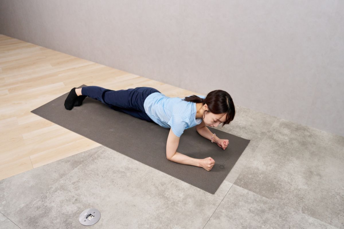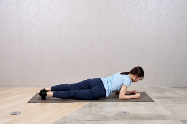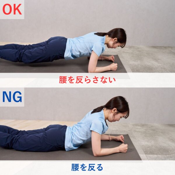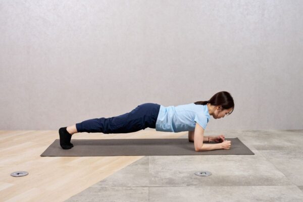 - 通常のプランク姿勢をとる