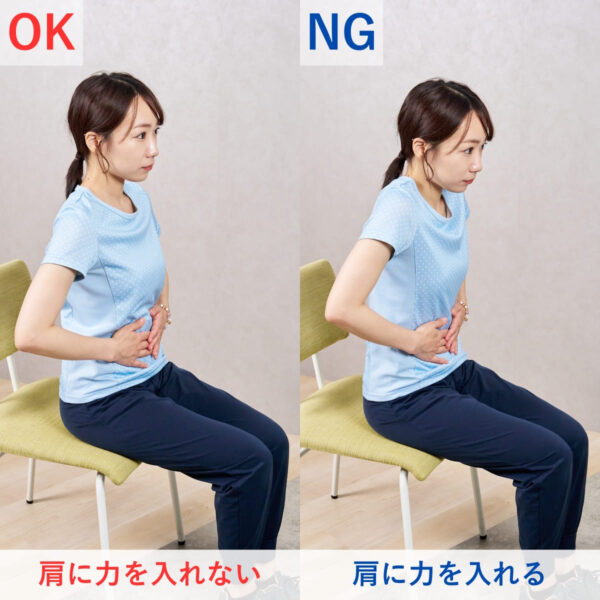 - 口からゆっくりと息を吐きながら、お腹をへこませる