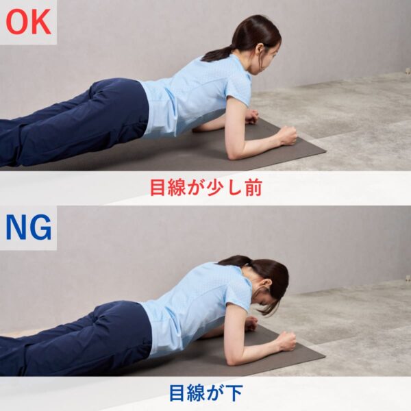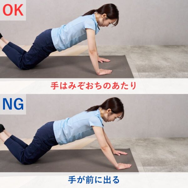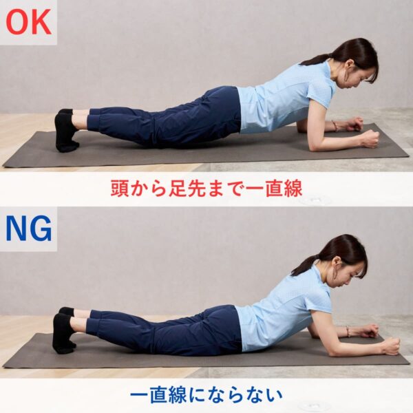 - 身体が直線になるようにひざをついて脚を伸ばす