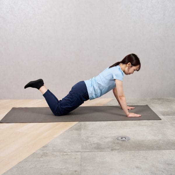 腕だけでなく胸やお腹にも効いている感覚があり、意外と全身を使うことに驚きました。ひざをつくことでバランスが取りやすく、筋力に自信がなくても安心して取り組めました。