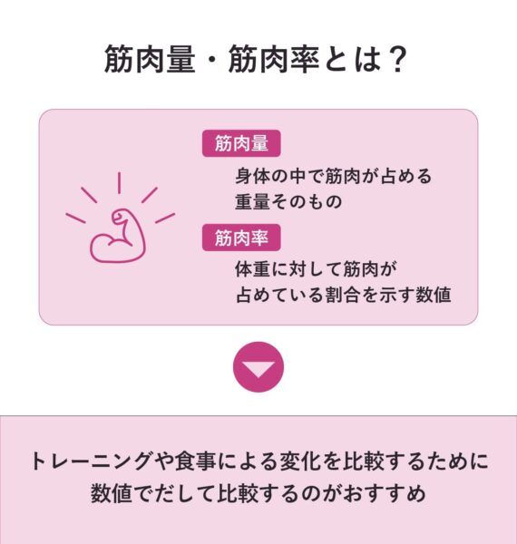 筋肉量は増減の「実数値」を把握できるため、トレーニングや食事による変化を正確に比較する際におすすめ。