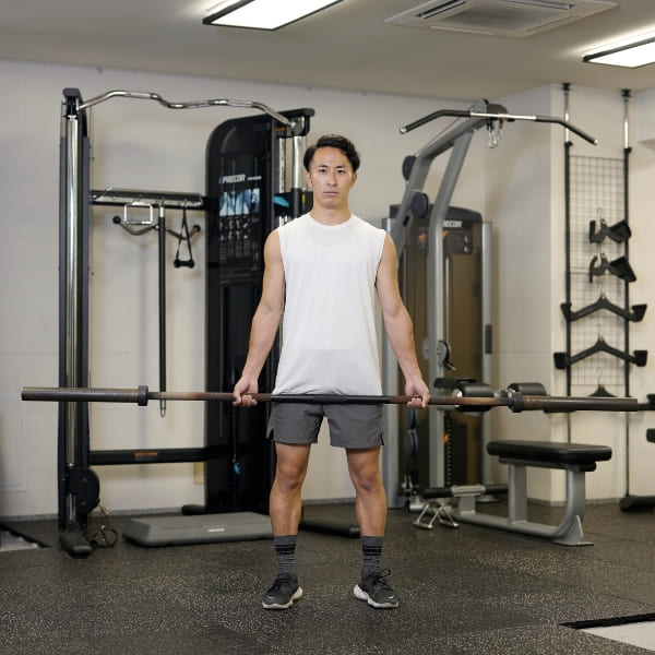 腕はあくまでバーを支えるだけにして、肩をすくめる動きだけに意識を向けることでフォームも安定しやすかったです。初心者にはダンベル使ってのシュラッグの方がよいかもしれません。