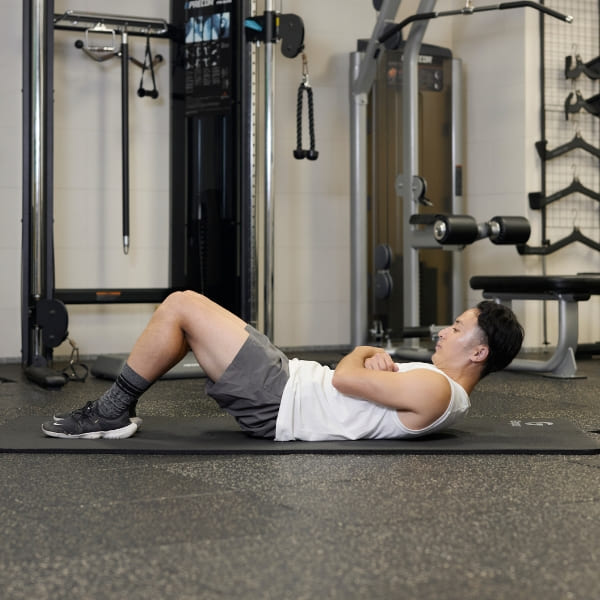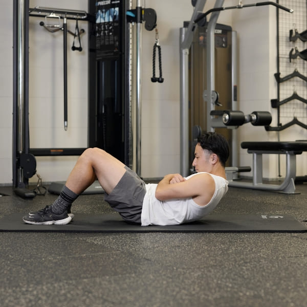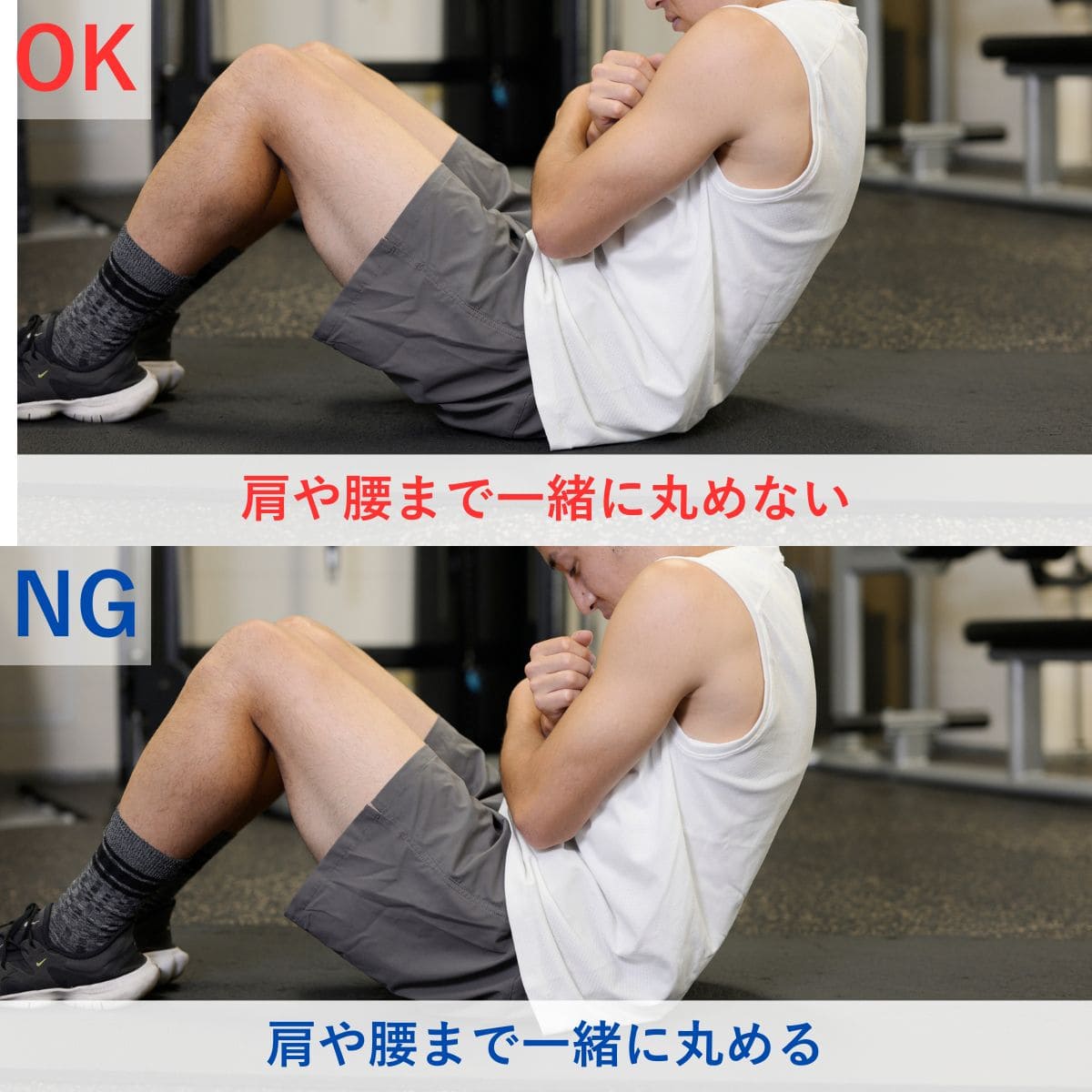 - 上体を浮かせた状態で一瞬キープし、元の位置へゆっくり戻す