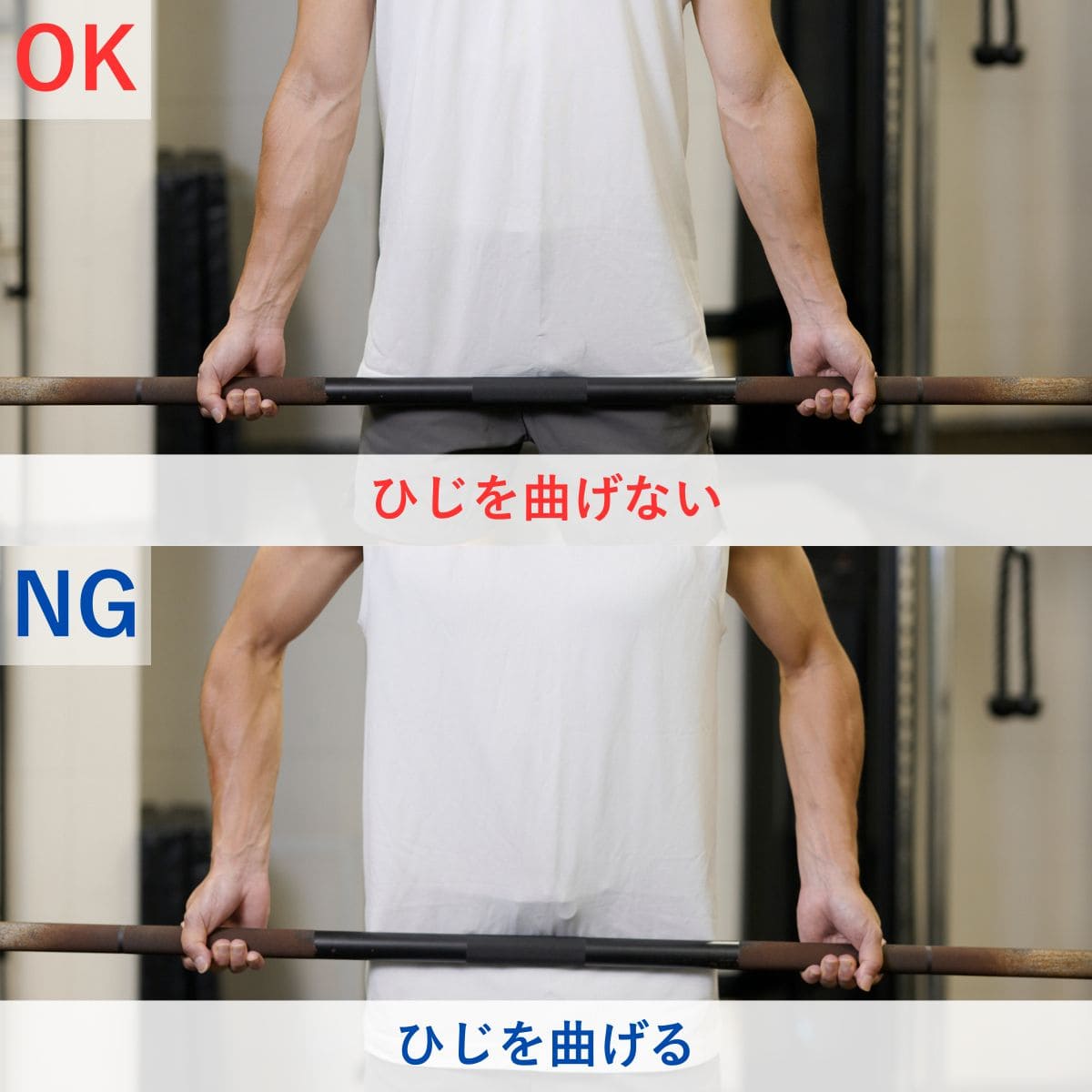 - ひじを身体に近づけるイメージでバーベルを引き上げる