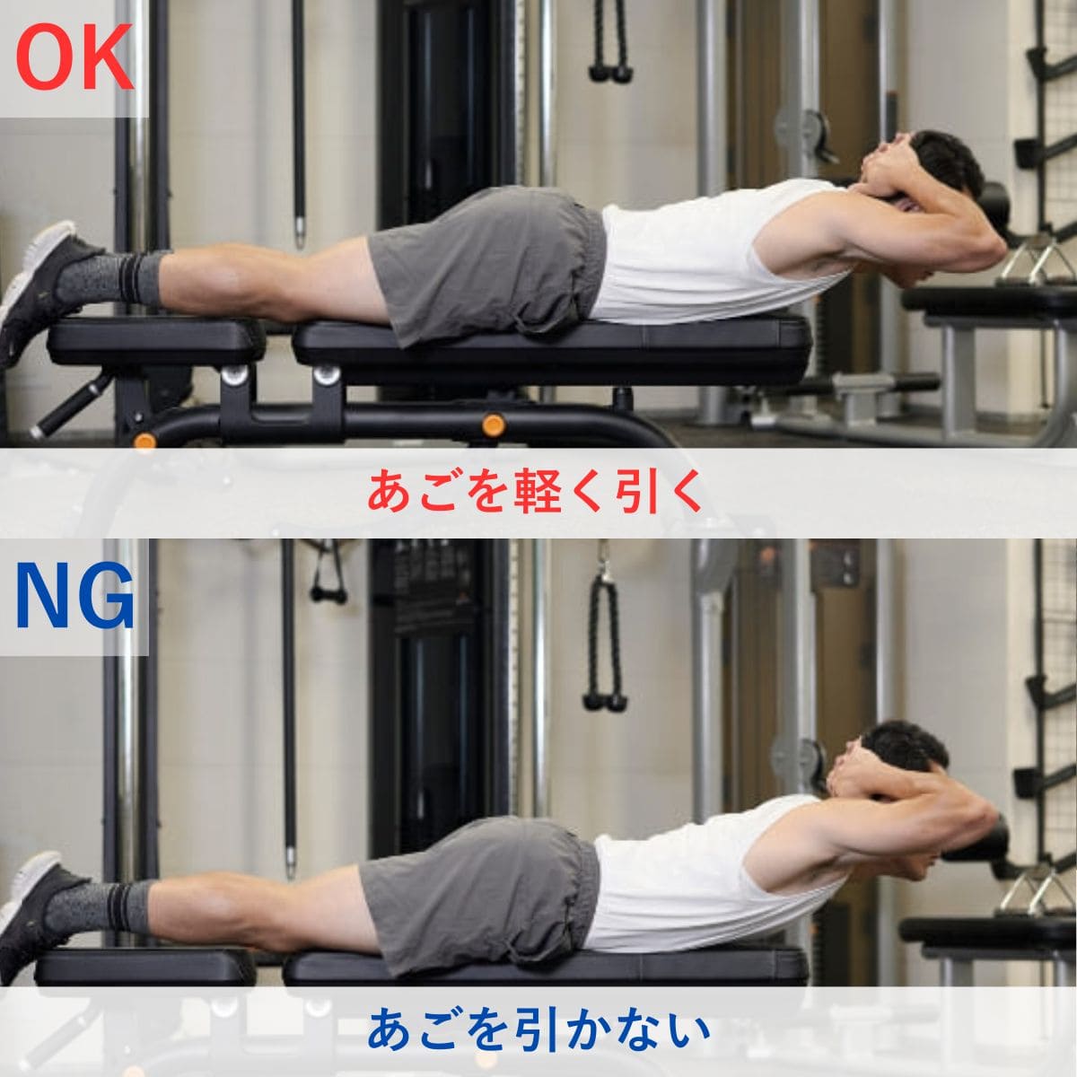 ストレートネックや猫背姿勢の改善におすすめですが、あごを強く引きすぎると頸椎に圧力がかかるため注意しましょう。トレーニング中は呼吸を止めずにおこない、違和感を感じたら他の筋肉をほぐしましょう。