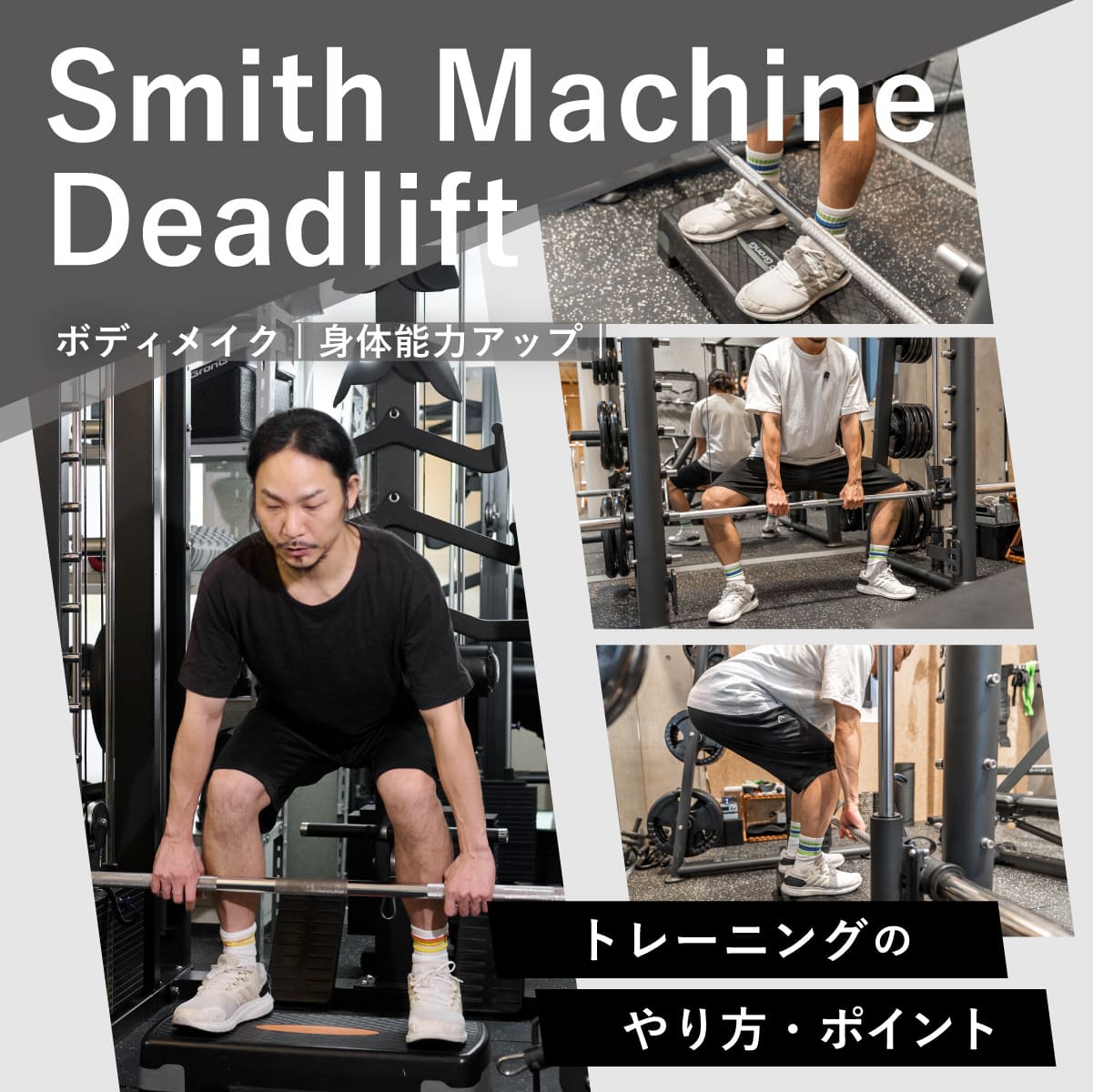 スミスマシンデッドリフトは、軌道が固定されたバーを使うためフォームを安定させやすい。ケガを避けながら、狙った部位にアプローチしやすいのが主なメリット。