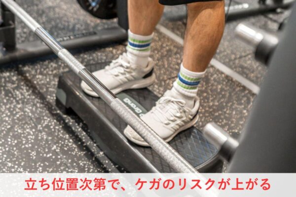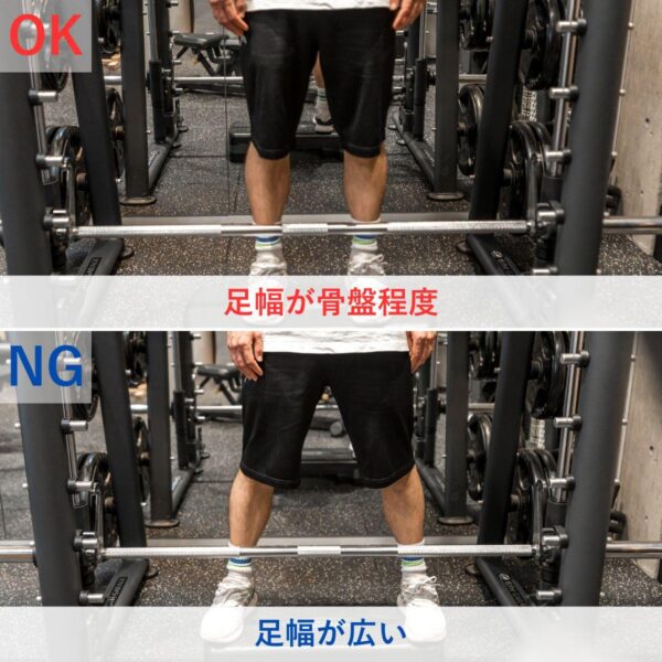 スミスマシンのデッドリフトは、立ち位置のズレがそのまま関節へのストレスにつながりやすくなります。とくにバーが足から離れると重心が前に流れてしまい、腰・ひざの負担が一気に増えてしまいます。