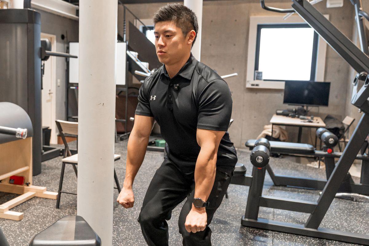 動作の最後に胸を軽く張り、肩甲骨を寄せる意識を持つと、僧帽筋の中部〜下部にしっかり刺激が入る感覚がありました。背中をまっすぐ保ったうえで仕上げのポジションをつくることで背面全体を使っている感覚が強まりました。