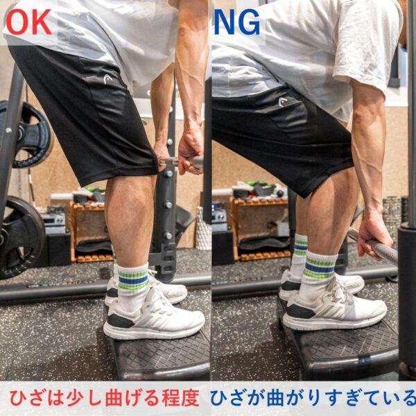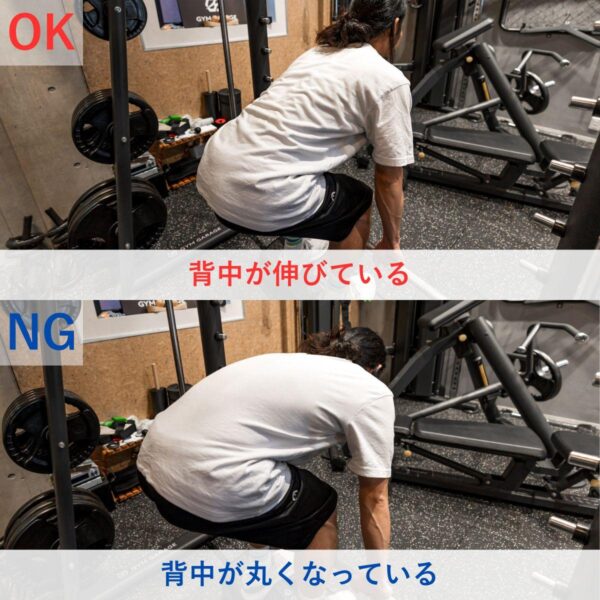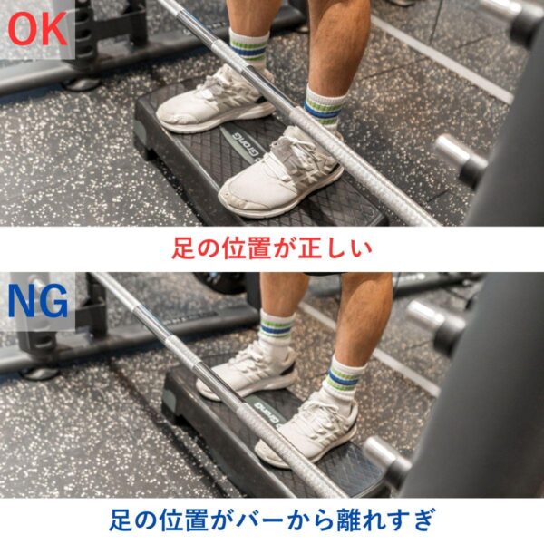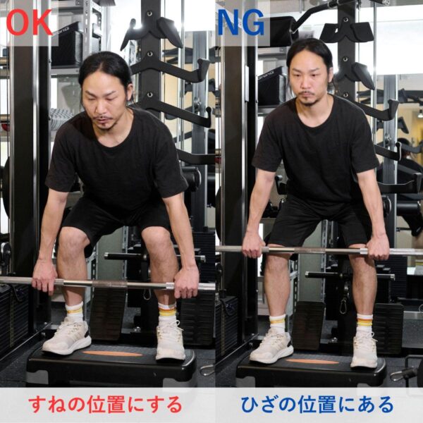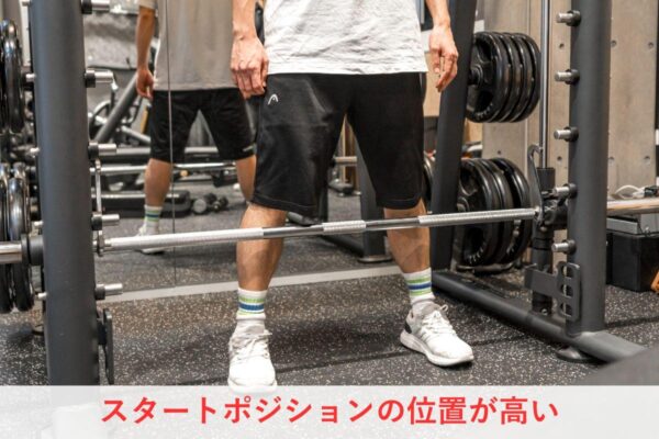 バーのスタート位置が高過ぎたり低過ぎたりすると、背中や下半身の筋肉を大きく伸ばして使う感覚が得にくく、トレーニング効果が薄くなるパターンもある。