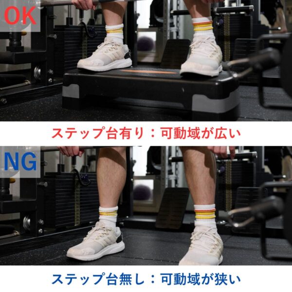 ステップ台に乗り、可動域を広げるのがおすすめ