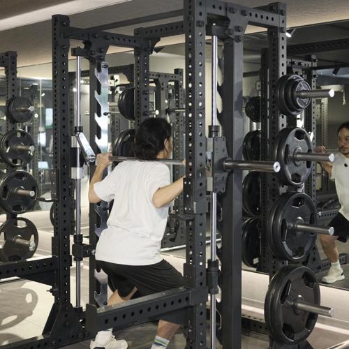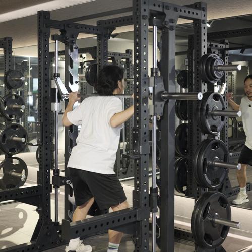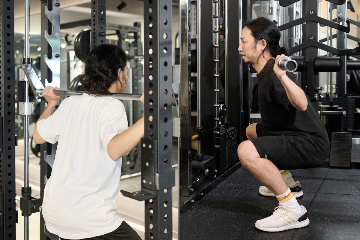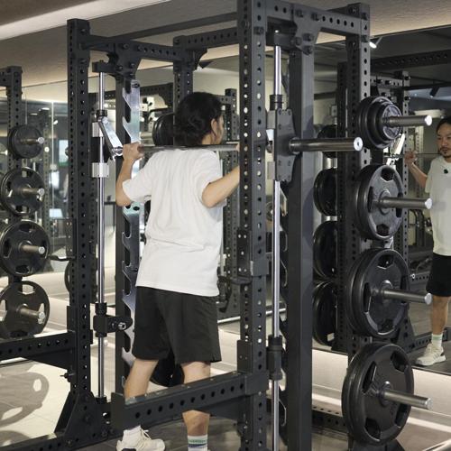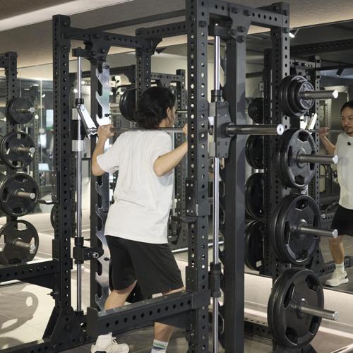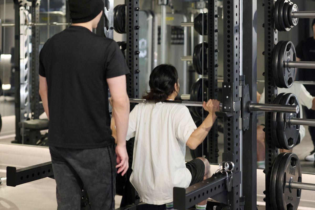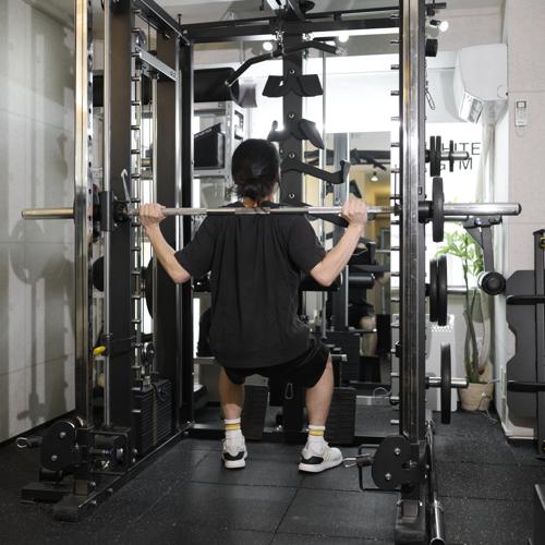 スクワット種目は、普段からスミスマシンで取り組んでいます。バーベルの軌道が固定されているスミスマシンは、バランスが崩れる怖さがなく「脚で押す」ことに集中できるのが一番のメリットだと感じています。動作そのものに集中しやすく、狙った部位へ負荷を乗せやすい印象です。また、限界に近づいたときでもフックをひねってすぐ止められる安心感があり、高重量にも挑戦しやすい点は大きな利点だと感じています。