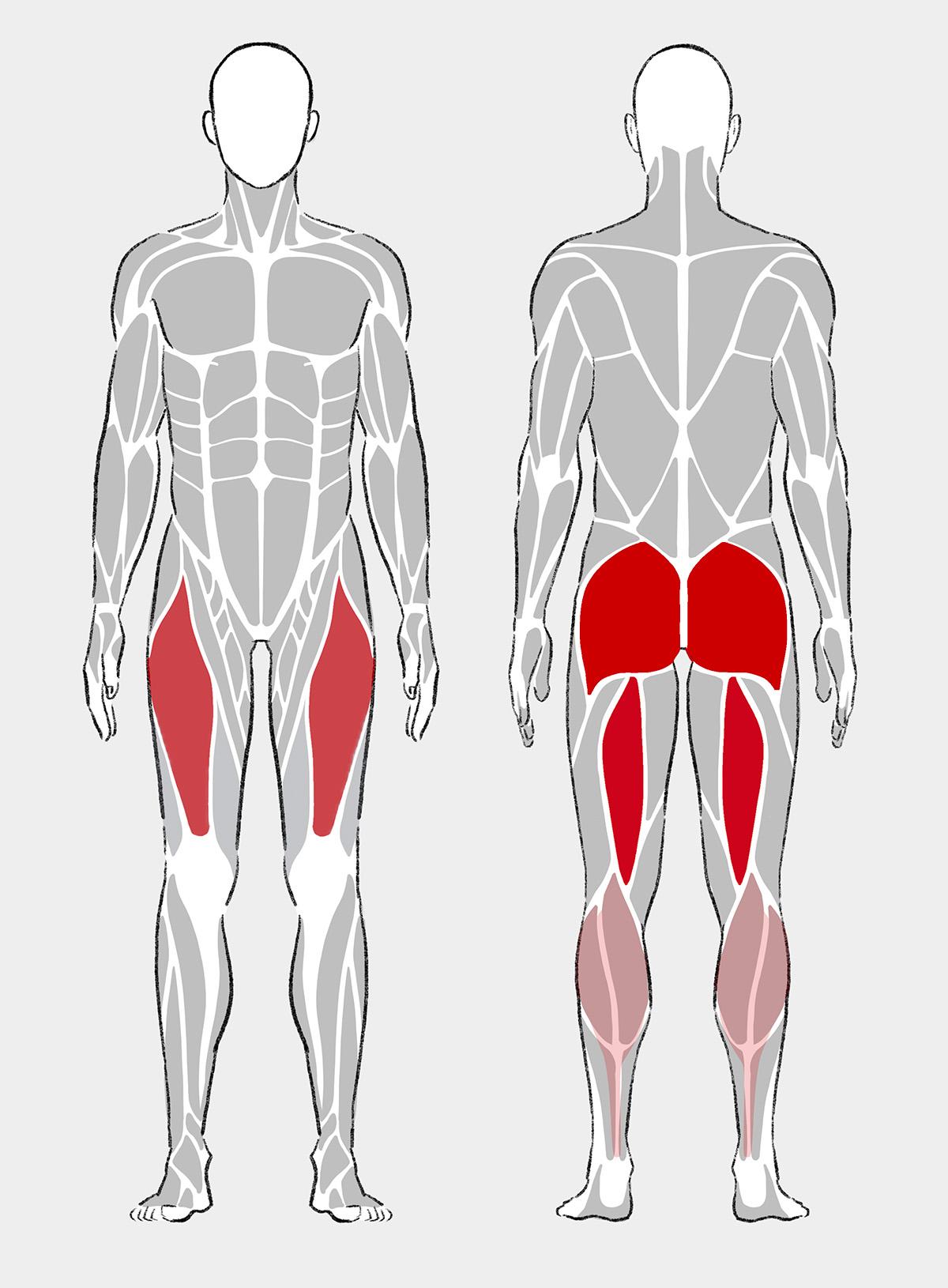| 鍛えられる部位 | 大腿四頭筋、大殿筋、ハムストリング |