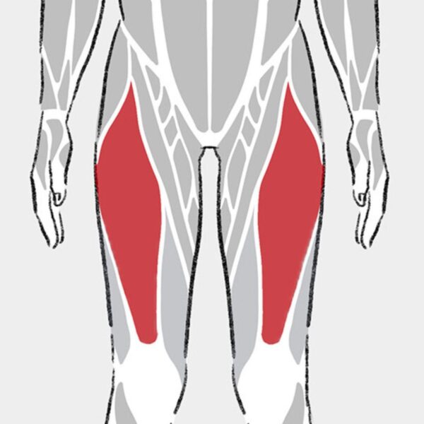 大腿四頭筋は太ももの前側に位置する。しゃがむ動作で強く働き、ひざを伸ばす瞬間に負荷が集中する。