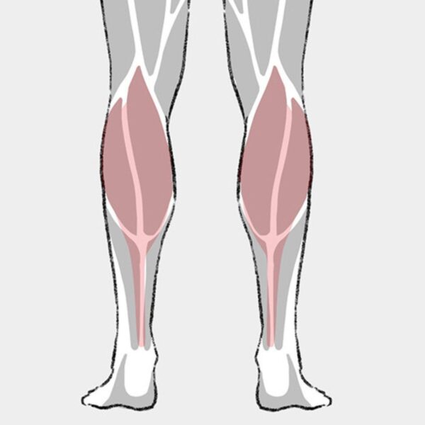 下腿三頭筋はふくらはぎに位置する腓腹筋とヒラメ筋の総称。つま先で地面を押す動作や、歩行・ランニング時の前進力に関わり、姿勢保持にも影響する。
