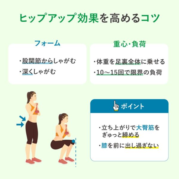 - 太ももとお尻に負荷を感じながら、床を押すイメージで立ち上がる