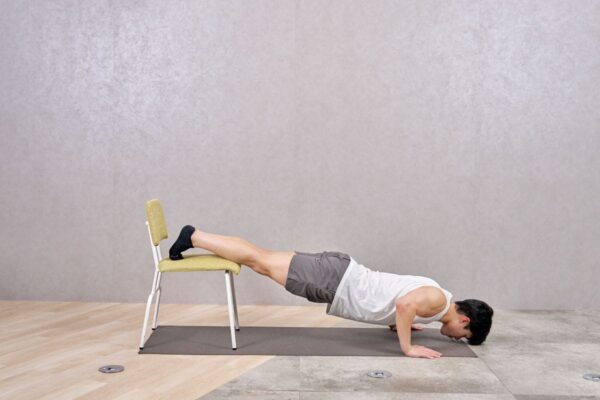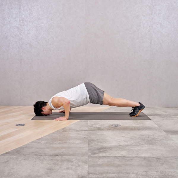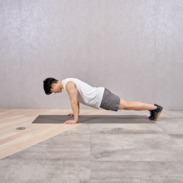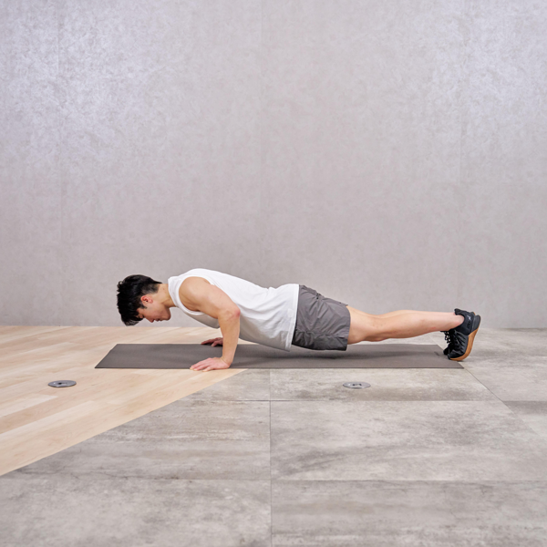 手幅を狭くすることで、通常のプッシュアップよりも二の腕への負荷が強く感じられました。ひじが外に開くと楽になってしまうため、ひじの向きを意識するのがポイントだと感じました。