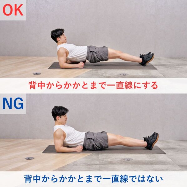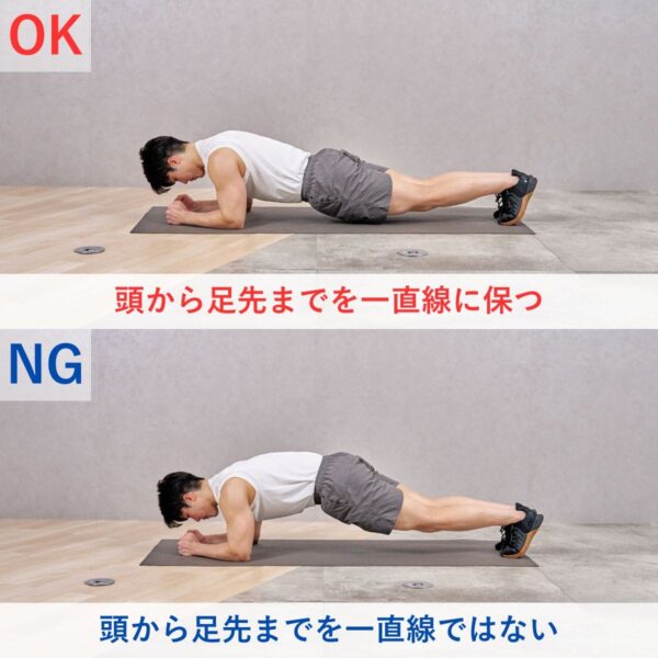 - 頭からかかとまで一直線をキープする