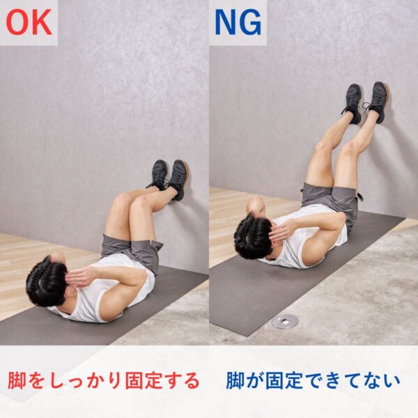 - 壁に足をつけたクランチ
