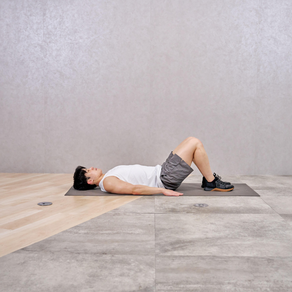 - 両手を床につけた状態でお尻を持ち上げる