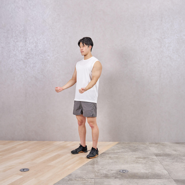 - 地面を手で強く押し、元の位置に戻る