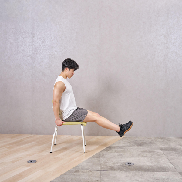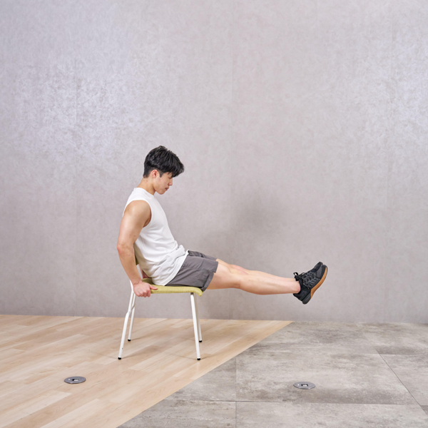 - 座ってレッグレイズ
