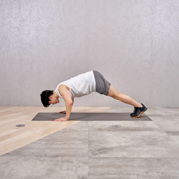 逆V字の姿勢を取るだけでも肩に負荷がかかり、腕を曲げる前からきつさを感じました。5回ほどで肩がピンポイントで疲れてきて、プッシュアップとは違う刺激だと実感しました。