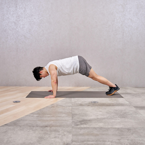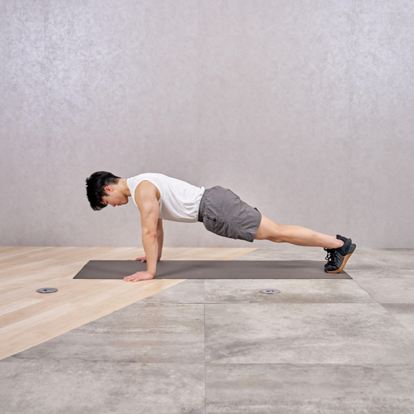 - 床に両手を肩幅よりやや広めにつく