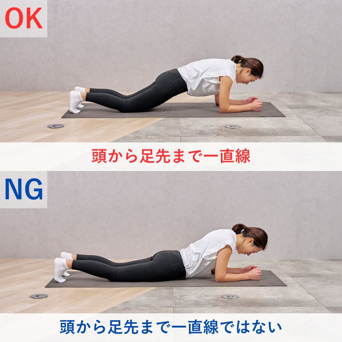 - 肩からお尻までが一直線になるように、姿勢をキープする