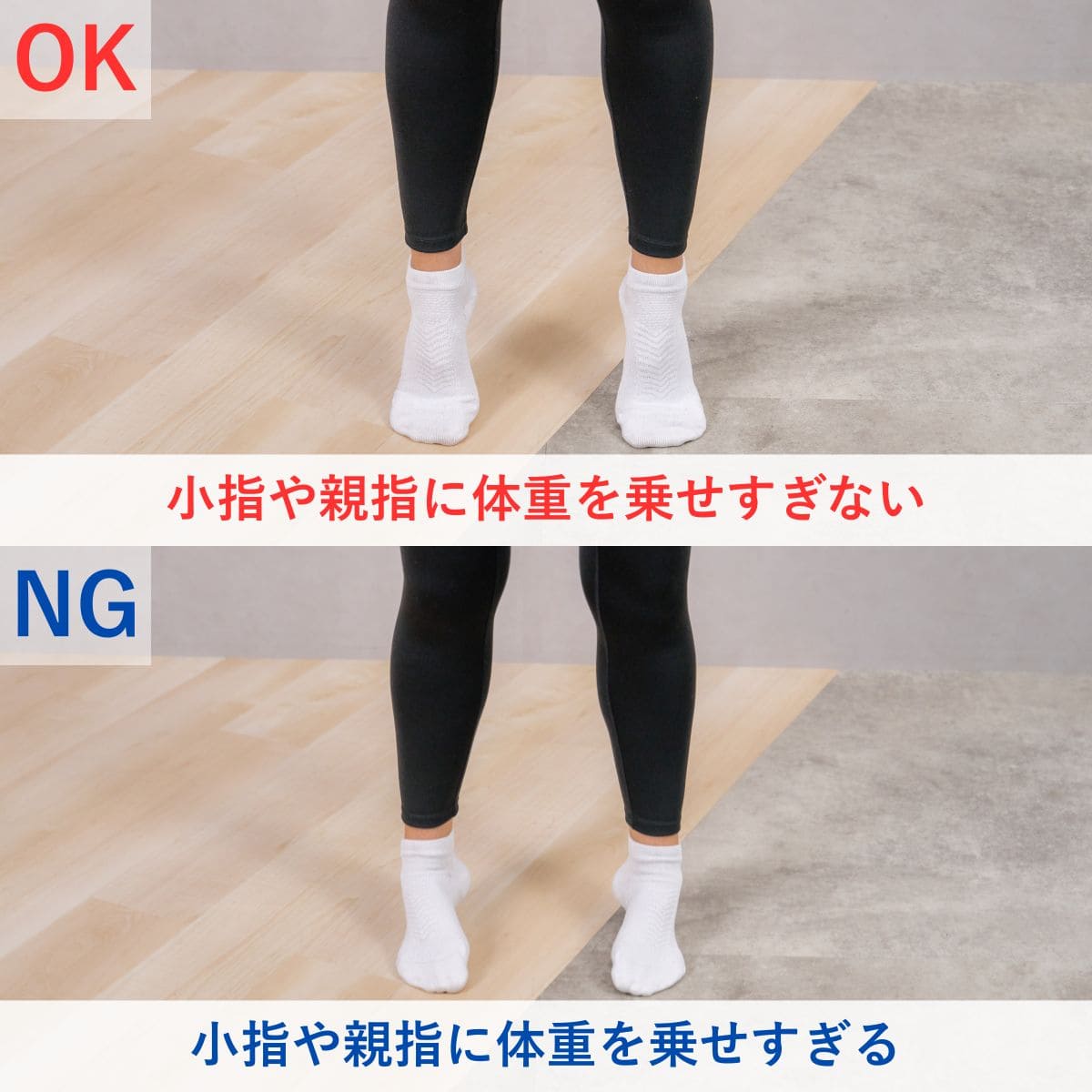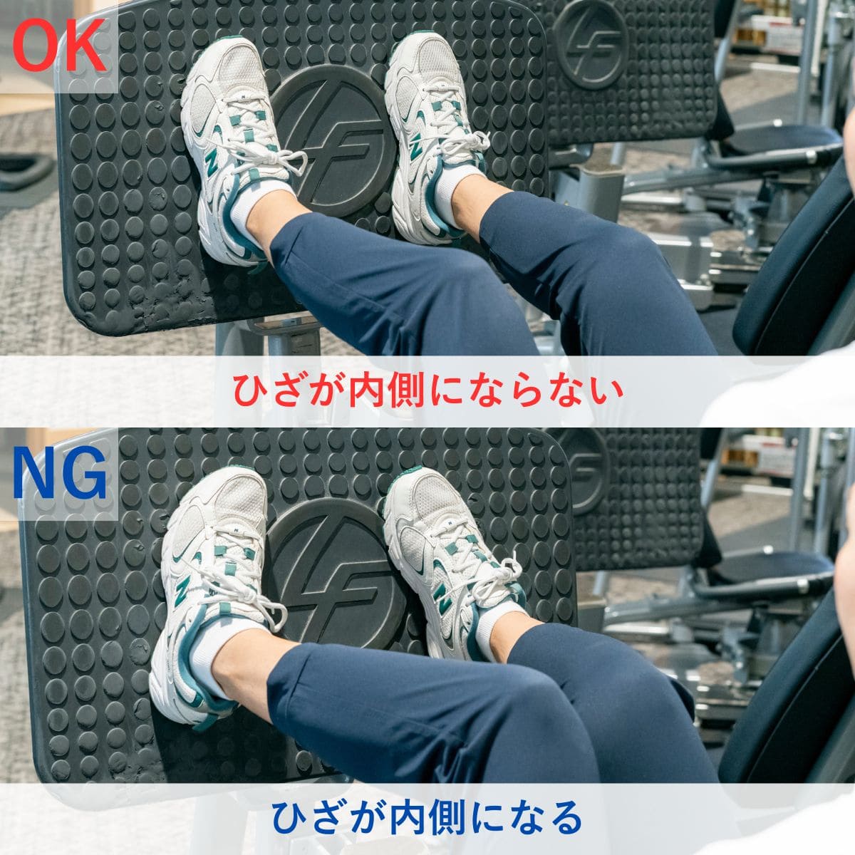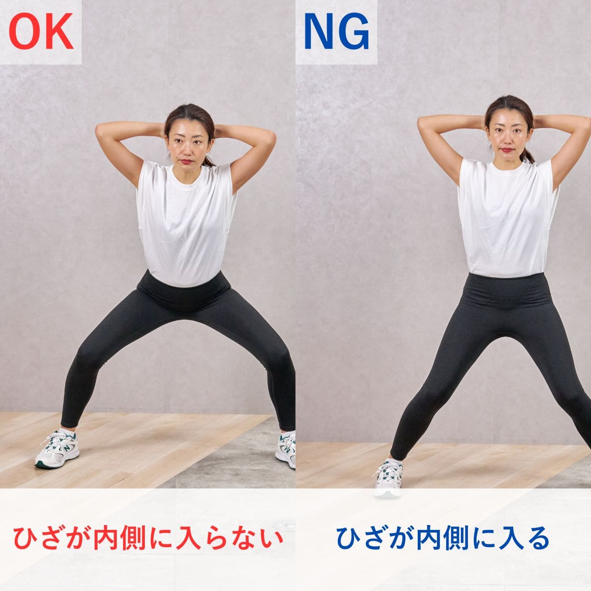 - ひざが内側にならない