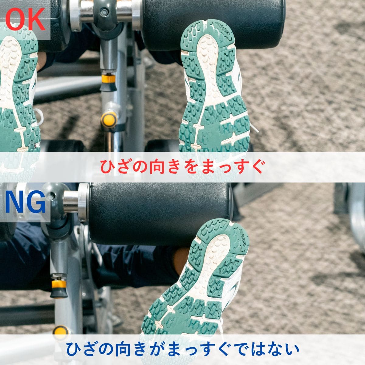 - ひざの向きをまっすぐ