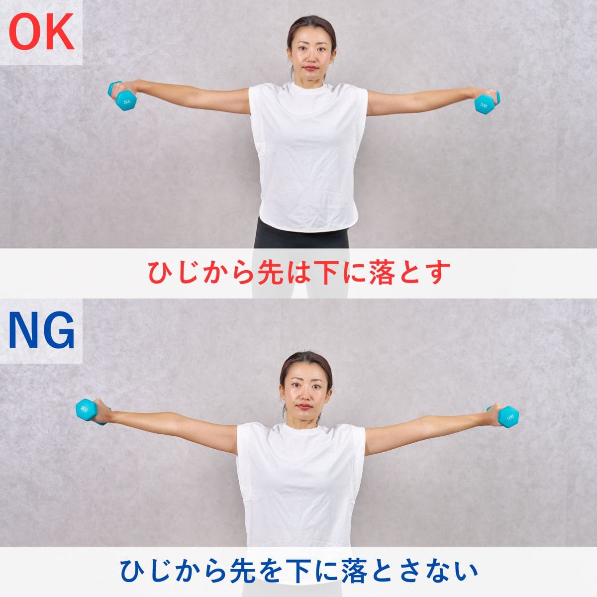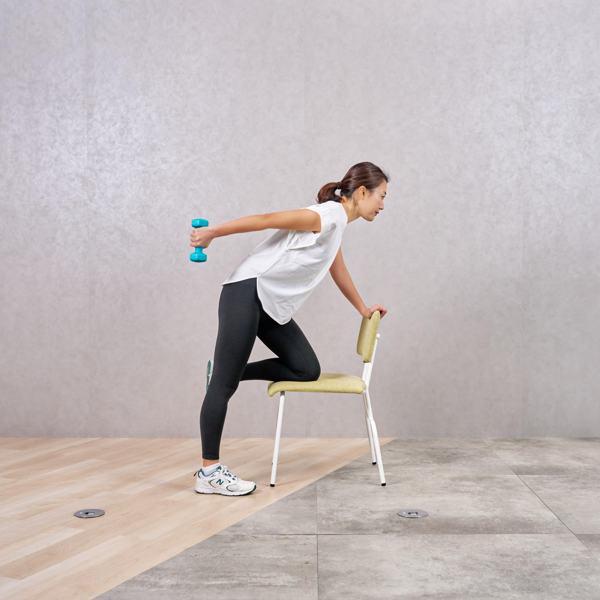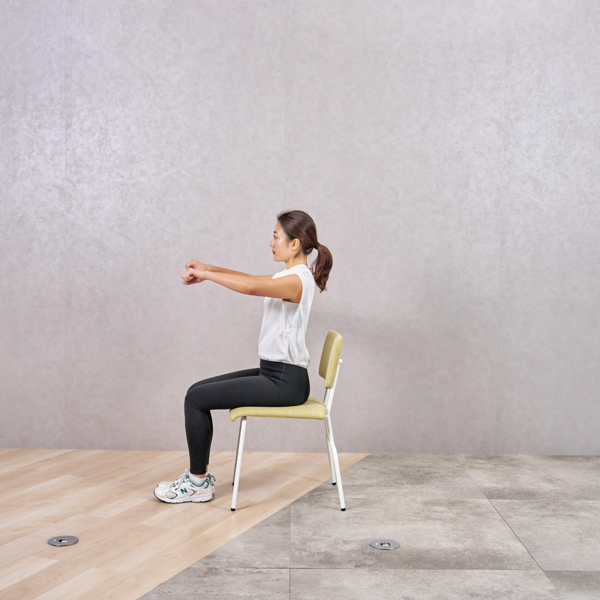 - 背すじを伸ばし、ひじを後ろに引く